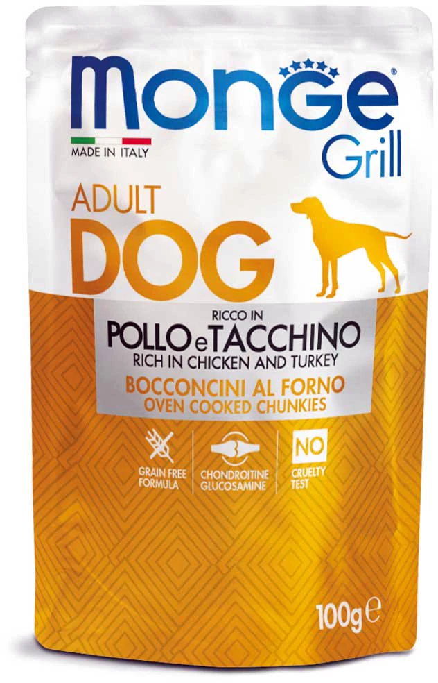Monge Dog - Grill Adult - Chicken & Turkey - Csirke és Pulyka darabok - 100g