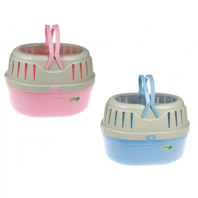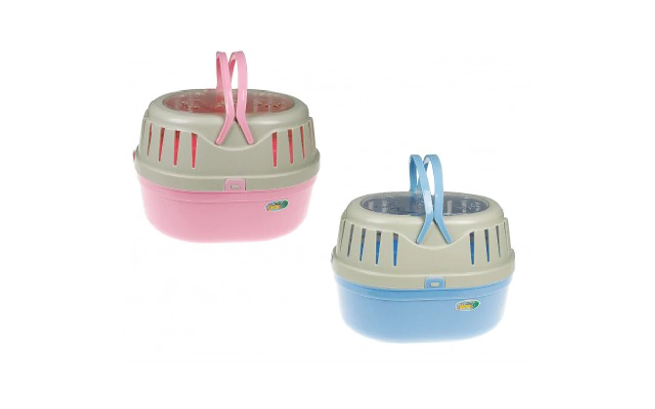 Műanyag szállítóbox kisebb állatoknak, rágcsálóknak, madaraknak. Könnyen tisztítható, praktikus kisállat hordozó foganytúval.