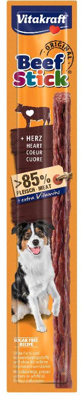 A Vitakraft Beef Stick minden kutya szívét gyorsabban dobogtatja! A nagy és kicsi négylábú barátokat egyaránt lenyűgözi - egyedi, kiadós ízével , abszolút finom illatával és extra magas hústartalmával . Tökéletes kényeztetésre, jutalmazásra vagy egyszerűen egy kis uzsonnára a kettő között! Különösen praktikus: a frissen lezárt, könnyen kinyitható csomagolásnak köszönhetően a Beef Stick Original útközben is ideális.